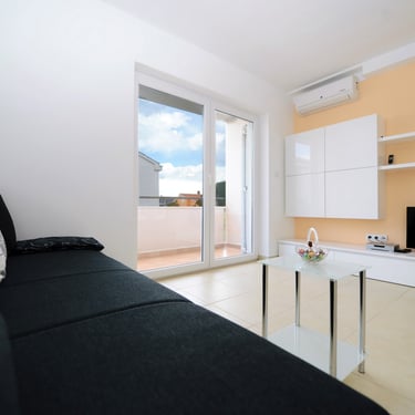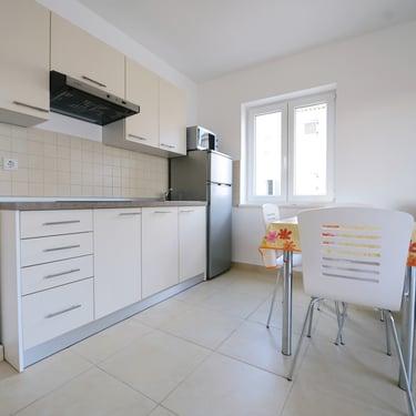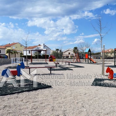 Moderno uređen apartman u mjestu Porat, pokraj Malinske, otok Krk. Površine 42m2 udaljen 200 m od centra i mora, kategoriziran je s četiri zvjezdice. Apartman se nalazi na prvom katu, ima osigurano parkirno mjesto i sastoji se od jedne spavaće sobe, potpuno opremljene kuhinje s dnevnim boravkom, kupaonice s tuš kabinom i lođe. U dnevnom boravku nalazi se kauč na razvlačenje na kojem mogu spavati dvije osobe. Apartman ima WiFi, perilicu rublja, perilicu suđa te klima uređaj. U blizini apartmana nalaze se dječje igralište, šetnice i biciklističke staze.